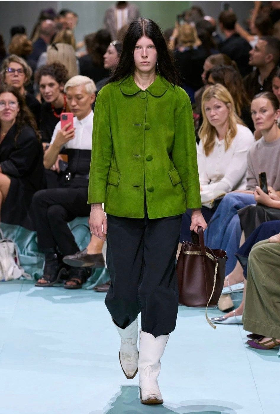 Anyway, many of my outfits are inspired by Mallory. I love when she sends me pics of her fits and wish she did it more, but alas she only sends me them on occasion, so I cherish those moments. Similarly, whenever I see a new Miuccia Prada runway show I am also always blown away. She remains spot on with all of her designs and stylistic choices. They always include such interesting silhouettes and colors and similarly remain practical for women. I will likely do another article solely about Miuccia, so I’m going to leave it there. The outfit in this video, I think perfectly captures my excitement for exploring different outfits and stylistic choices while finally being comfortable dressing in a way that brings me joy and is a bit rebellious against how I learned a woman should dress.